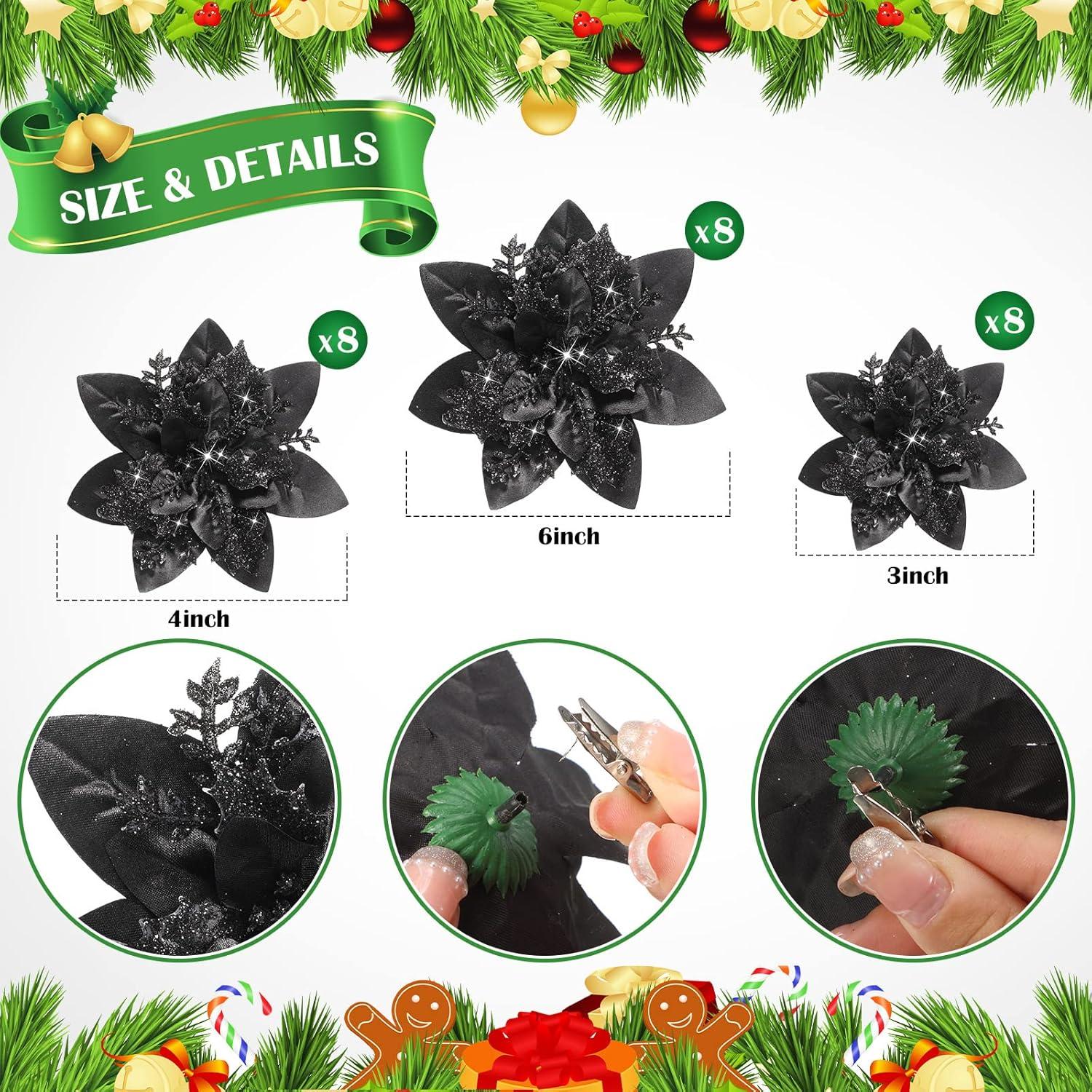 Meet Your Party Decorative Needs: this package comes with 24 pieces Xmas decorations flowers in 3 different sizes, 8 pieces for each size, the quantity is sufficient that can better meet your party decorative needs