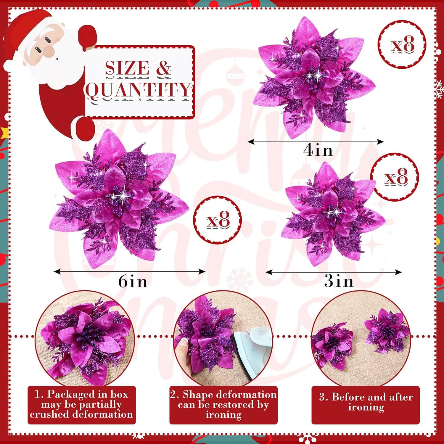 Meet Your Party Decorative Needs: this package comes with 24 pieces Xmas decorations flowers in 3 different sizes, 8 pieces for each size, the quantity is sufficient that can better meet your party decorative needs