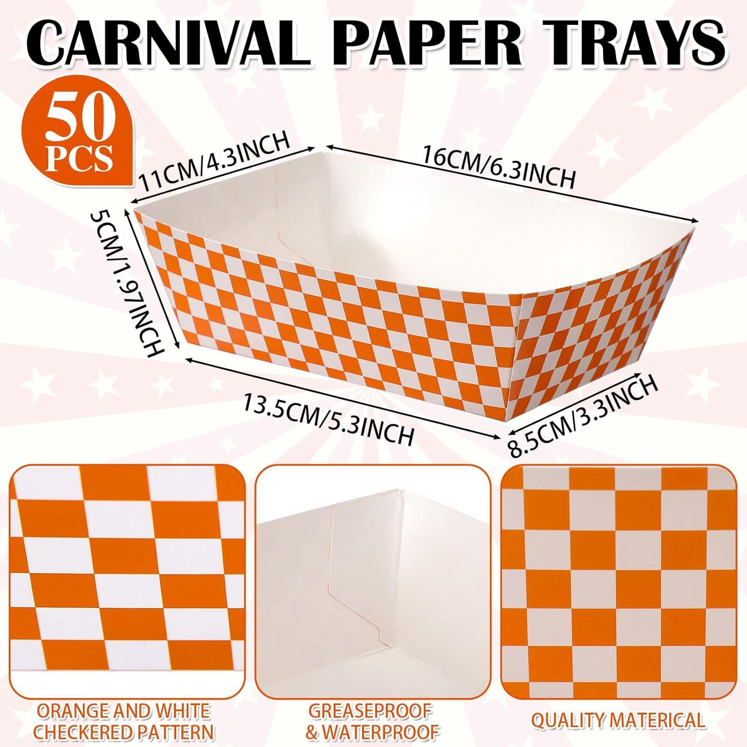 Party Favors: these checkered food trays and wax paper sheets are printed with orange and black checker, eye catching fonts, great wrap and container will be a wonderful addition to your carnival birthday party decorations for every celebration