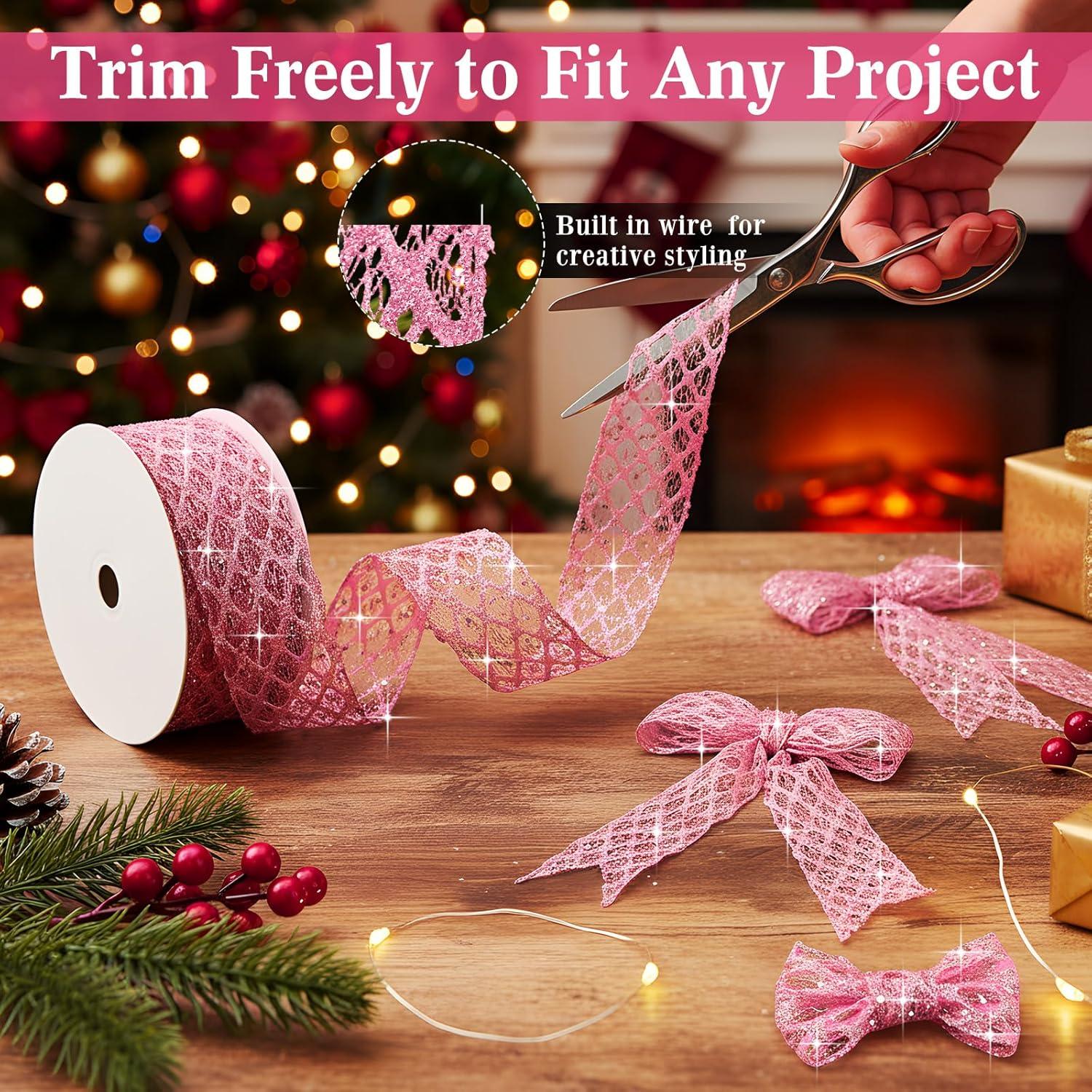 Elegant & Festive Design: This mesh wired ribbon adds a dazzling touch to gift boxes, wreaths, bouquets, and more; Designed for decorating Christmas trees, windows, doors, walls, staircases, fences, fireplaces, and other spaces to create a joyful holiday ambiance