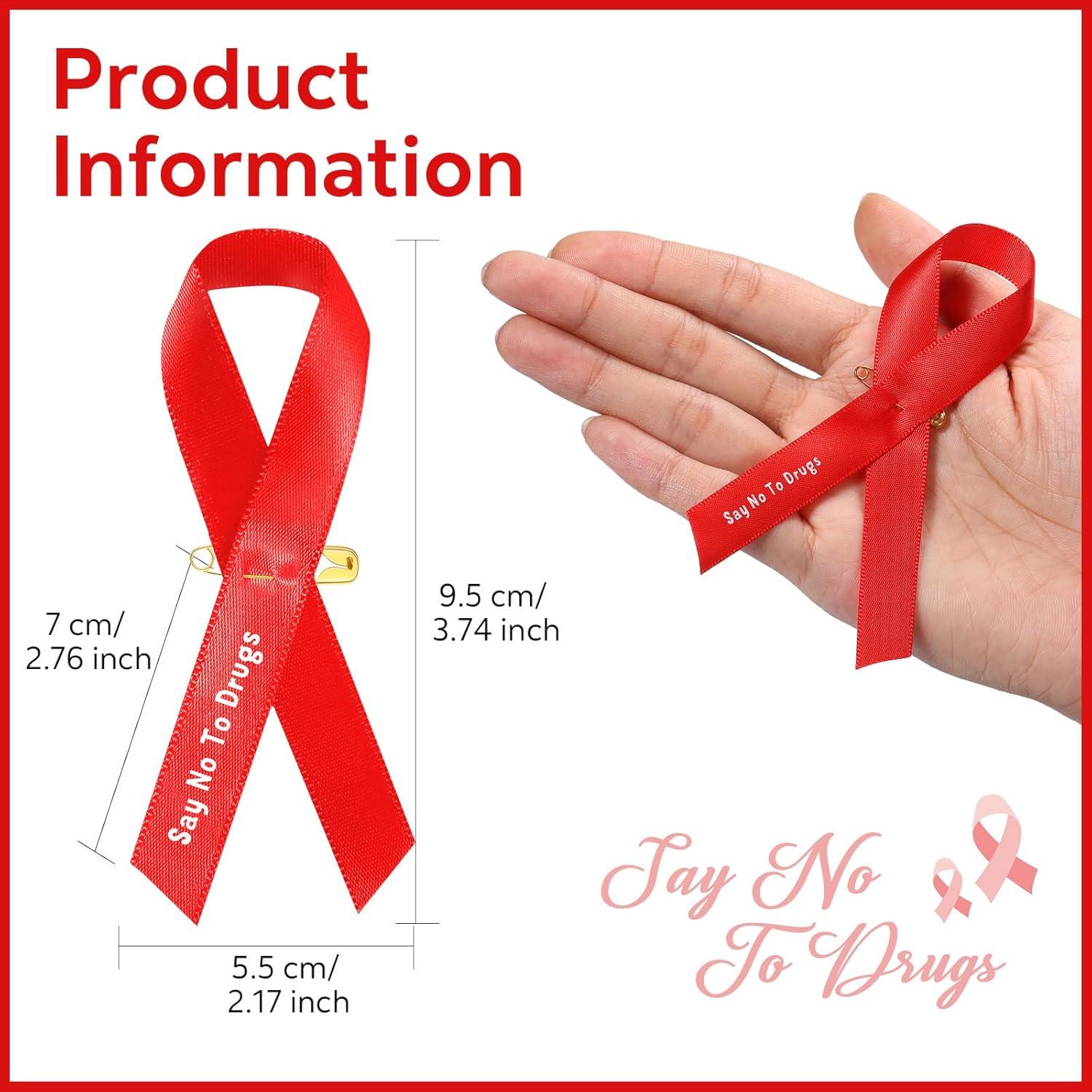Geosar 50 Pcs Red Ribbon Pins Anti-Drugs Awareness Say No to Drugs Red Ribbon with Safety Pins Public Campaign Party Favors Supplies