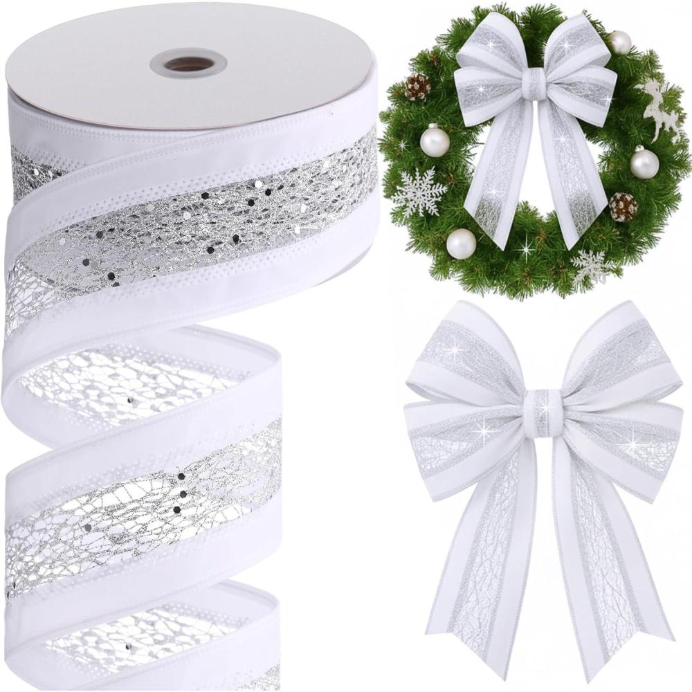 Quality Material: this ribbon is made of flocking ribbon and sequin mesh ribbon stitching compound, weaving a ribbon-like mesh effect, adding rich texture and layering to your crafts; It is very suitable for Christmas decorations, garlands, bows, crafts, gift packaging, etc, ensuring that your creations maintain their beautiful appearance throughout the holiday season and beyond